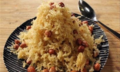Start by cooking the sago with water and then add milk and khoya. Sauté nuts and raisins in ghee until golden brown in colour. Add to the sago mixture and finish it with sugar and cardamom powder. Then deep fry the pattice, drain and serve.