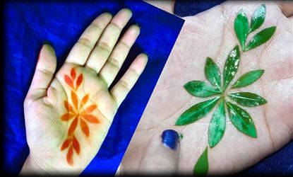 మనం ముందుగా గోరింటాకు ఆకులని కోసుకుని పక్కన పెట్టూకోవాలి.ఇప్పుడు చేతికి కొంచెం ముందుగా వ్యాజిలిన్ రాసుకోవాలి.ఇది రాసిన తరువాత దీని మీద వోలినీ స్ప్రే కొట్టుకొని దాని మీద గోరింటాకు ఆకులను మనకి నచ్చిన రీతిలో మనకి నచ్చిన డిజైన్ లో పెట్టుకొని దాని మీద మళ్ళీ వోలినీ స్ప్రే కొట్టి ఒక గంట సేపు ఉంచుకోవాలి. గంట తరువాత అవి రంగు మారతాయి వడపడినట్టు అలా అయ్యాక ఆకులని తీసేసి చూడండి చక్కగా ఎర్రగా పండి మంచిగా ఉంటుంది.