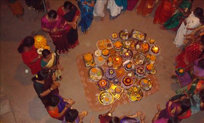 ఎంగిలి పూల బతుకమ్మ: మహా అమవాస్యరోజు బతుకమ్మ మొదటిరోజు వేడుక మొదలవుతుంది. తెలంగాణలో దీన్ని పెత్రామస అని కూడా అంటారు. నువ్వులు, బియ్యంపిండి, నూకలు కలిపి నైవేద్యం తయారు చేస్తారు. అటుకుల బతుకమ్మ : ఆశ్వయుజ శుద్ధ పాడ్యమి నాడు చేస్తారు. సప్పిడి పప్పు, బెల్లం, అటుకులతో నైవేద్యం తయారు చేసి అమ్మవారికి సమర్పిస్తారు. ముద్దపప్పు బతుకమ్మ : ముద్దపప్పు, పాలు, బెల్లంతో నైవేద్యం తయారు చేసి సమర్పిస్తారు. నానే బియ్యం బతుకమ్మ : నానేసిన బియ్యం, పాలు, బెల్లం కలిపి నైవేద్యం చేస్తారు. అట్ల బతుకమ్మ : అట్లు లేదా దోశ నైవేద్యంగా సమర్పిస్తారు..అలిగిన బతుకమ్మ : ఈరోజు ఆశ్వయుజ పంచమి. నైవేద్యమేమి సమర్పించరు. వేపకాయల బతుకమ్మ : బియ్యంపిండిని బాగా వేయించి వేపపండ్లుగా తయారు చేసి నైవేద్యంగా సమర్పిస్తారు. వెన్నముద్దల బతుకమ్మ : నువ్వులు, వెన్న లేదా నెయ్యి బెల్లం కలిపి నైవేద్యం తయారు చేస్తారు.