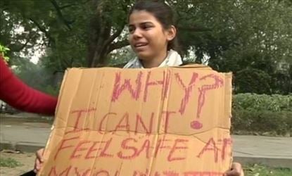 হাতে একটি প্ল্যাকার্ডে লাল কলমে লেখা একটি স্লোগান, "কেন? আমি আমার নিজের দেশে নিরাপদ অনুভব করতে পারি না" এই বিক্ষোভের সময় মেয়েটিকে কাঁদতেও দেখা গেছে। দিল্লি পুলিশের আধিকারিকরা বিক্ষোভ স্থলে পৌঁছে মেয়েটিকে তার প্রতিবাদ শেষ করতে অথবা ওই স্থান থেকে সরে জেতে বলে।