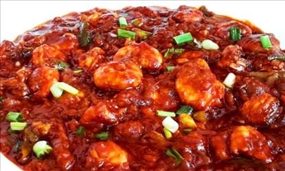 ముందుగా రొయ్యల్ని శుభ్రం చేసి చిన్న చిన్న ముక్కలుగా తరిగి పెట్టుకోవాలి. ఇప్పుడు అందులో కార్న్ఫ్లోర్, ఉప్పు, కారం, సోయా సాస్, పంచదార, వెనిగర్, పుడ్ కలర్ పట్టించి గంటపాటు పక్కనుంచాలి. ఇప్పుడు కడాయిలో నూనె వేసి ఉల్లితరుగు దోరగా వేగించుకోవాలి.