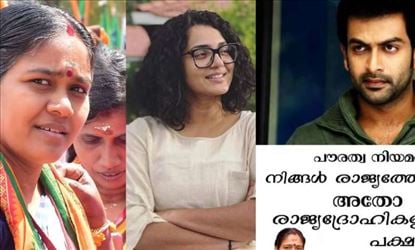 ജാമിഅ മില്ലിയ സർവകലാശാലയിലെ വിദ്യാർത്ഥികളുടെ പേരിൽ പൗരത്വ നിയമ ഭേദഗതിക്കെതിരേ നടക്കുന്ന ആൾക്കൂട്ട കോലാഹലത്തെ പിന്തുണച്ച പൃഥ്വീരാജ് സുകുമാരൻ ഉൾപ്പെടെയുള്ള അഭിനേതാക്കൾ ചില ചോദ്യങ്ങൾക്കു വ്യക്തമായ മറുപടി പറയണം: