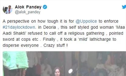 എന്നാൽ പൊലീസ് എത്ര പറഞ്ഞിട്ടും ആളുകൾ പിരിഞ്ഞു പോകാൻ തയ്യാറായില്ല എന്ന് മാത്രമല്ല ആൾദൈവം പൊലീസിന് നേരെ വാളോങ്ങുകയും ചെയ്തു. ഒടുവിൽ രണ്ട് ട്രക്കോളം പൊലീസെത്തിയാണ് ഇവരെ പിടിച്ചത്. ഉത്തര്പ്രദേശിലെ ദിയോറിയ ജില്ലയിലെ മെഹ്ദ പുർവയിലാണ് സംഭവം.