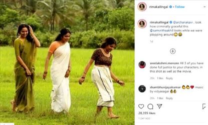 സംവൃതയുടെ സൗന്ദര്യത്തെ പ്രശംസിച്ചാണ് റിമ പോസ്റ്റ് ഇട്ടിരിക്കുന്നത്. നീലത്താമര എന്ന ചിത്രത്തില് പാടത്തെ വരമ്പിലൂടെ സംവൃതയും റിമയും അർച്ചന കവിയും നടന്നുപോകുന്നൊരു ചിത്രമാണ് താരം പങ്കുവെച്ചിരിക്കുന്നത്. ചിത്രം ഇസ്റ്റഗ്രാമില് ചര്ച്ചയായി കഴിഞ്ഞു. ഫോട്ടോക്ക് താഴെ നിരവധി കമന്റുകളാണ് എത്തിയിരിക്കുന്നത്.