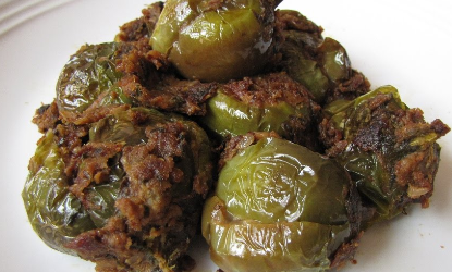 కావలిసిన పధార్థాలు : మువ్వ వంకాయలు : 5 జీడిపప్పుగుండ్లు : 20  గసగసాలు :2 చెంచాలు కొబ్బరి తురుము : 1 కప్ ధనియాలు : 1 చెంచా పచ్చిమిర్చి : 10 ఉల్లిపాయలు : 1 పెద్దది చింతపండు, ఉప్పు,: సరిపడినంత  పసుపు, నూనె, కొత్తిమీర : సరిపడినంత తయారీ చేయువిధానం : పుచ్చులులేని వంకాయలు చూసుకోవాలి. కొత్తిమీర, ఉల్లిపాయలను సన్నని ముక్కలు చేయాలి. పై సామాగ్రీని మెత్తగా రుబ్బి దాంట్లో ఉల్లి, కొత్తీమీర ముక్కలు వేసి బాగా కలిపి ఉంచాలి. వంకాయల తొడిమలు వుంచి నాలుగు పక్షాలుగా కోసి దాంట్లో రుబ్బిన ముద్దను సరిపడ పెట్టాలి. అన్నీ పెట్టి బాండీలో నూనె కాగిన తరువాత ఆవాలు వేసి చిటపటలాడిన తర్వాత కూరిన వంకాయలను నూనెలో దోరగా వేపి కొంచెం నీరు పోసి కలిపి మూతపెట్టాలి, సన్నని మంట మీద వుంచి మాడకుండా కలియతిప్పుతూ ఉడికించాలి. ఉడికిన తర్వాత దించి వేడి వేడి అన్నంలో తినాలి.