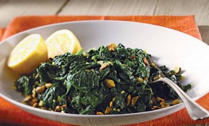 4. Toss the spinach and serve as a salad , garnished with lemon slices and strips.