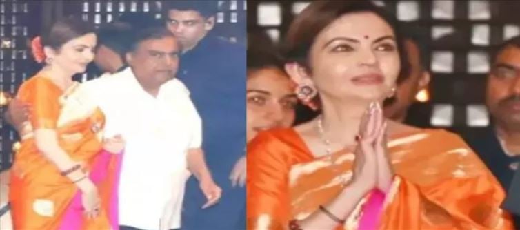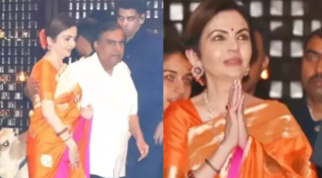 Recently, Nita Ambani looked very beautiful in an orange-colored saree, a small red bindi, and a red gajra in her hair at an intimate dinner party held at her luxurious home 'Antilia'. Let us show you.