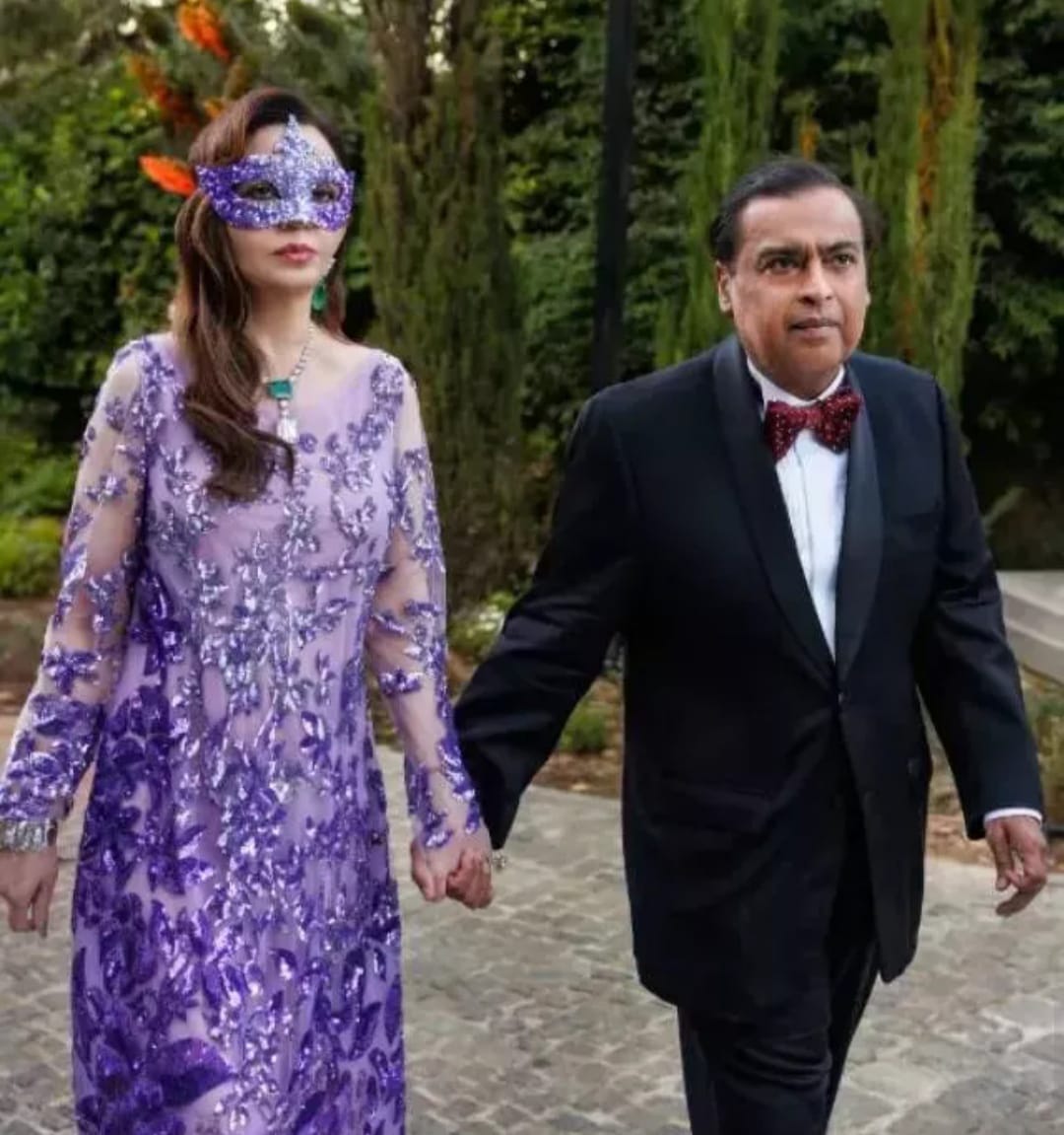 Nita Ambani wore a purple sequined gown by oscar de la Renta for the masquerade ball