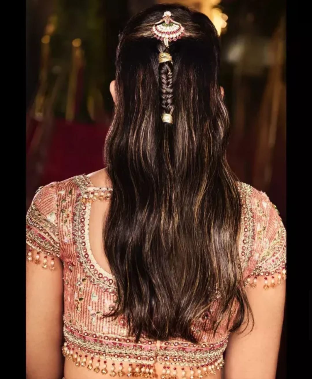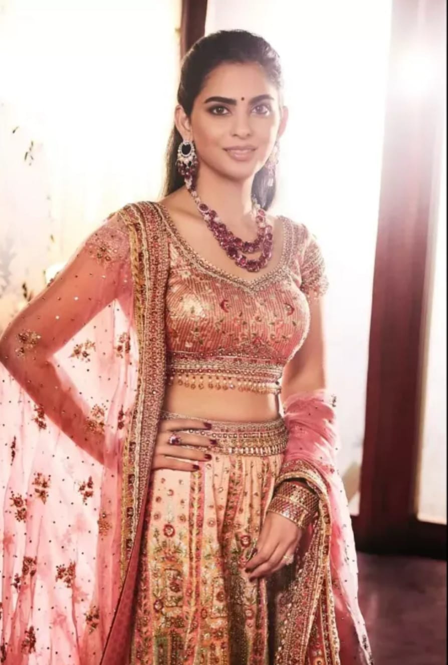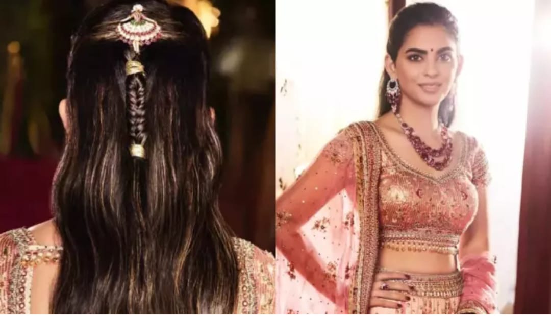 Isha Ambani styled tarun Tahiliani's lehenga with a dancing girl 'jadau' hairpin, which looked stunning