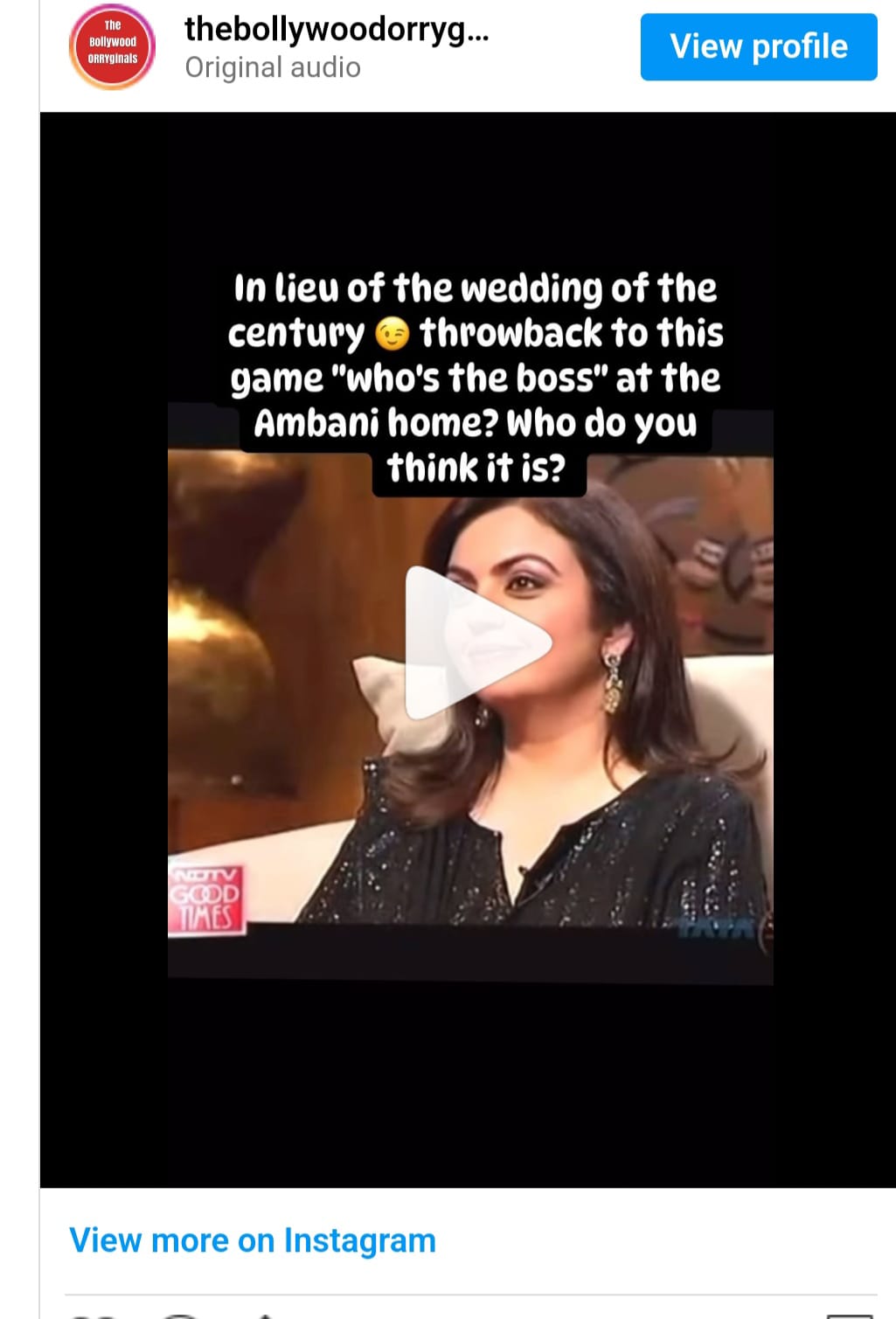 A video interview has been going viral where some interesting questions were asked. When asked who keeps the in-laws happy who tucks in the kids, or who is likely to start a fight and makeup and is an interior decorator, Nita answered in the affirmative, reinstating that she does all of the above.