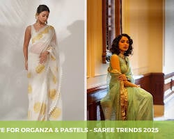 Meanwhile, Kiara Advani’s pastel wedding saree has redefined bridal and occasion wear. Moving away from traditional reds, her choice of delicate hues and subtle sequin work—a major pastel saree trend—has captivated audiences. This focus on minimalist glamour and breathable luxury, often in fabrics like organza or fine silk, is fueling a spike in demand for modern wedding sarees and similar Manish Malhotra-inspired drapes.
