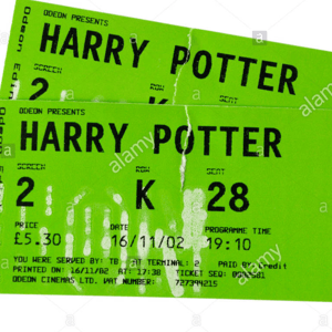 A paper slip or card indicating that its holder has paid for or is entitled to a specified service, right, or consideration to watch a movie