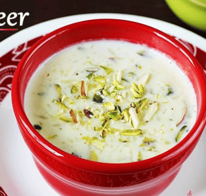 Kheer or Kheeri or Payesh, Payasam or Phirni a type of pudding from the Indian subcontinent, made by boiling milk, sugar, and rice, although rice may be substituted with one of the following: bulgur