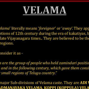 Velama is a caste found mainly in Andhra Pradesh and Telangana. The earliest occurrence of Velama as a term for a community dates from the 17th century.